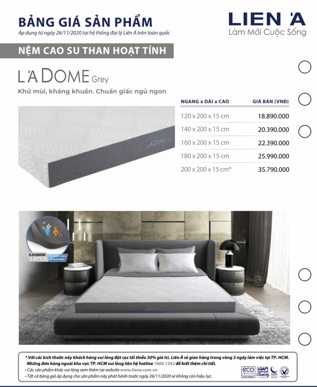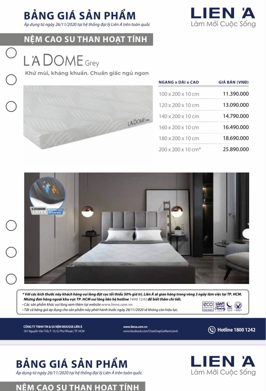 BẢNG GIÁ NỆM CAO SU LIÊN Á - L'A DOME BLUE ( 26.11.2020 )