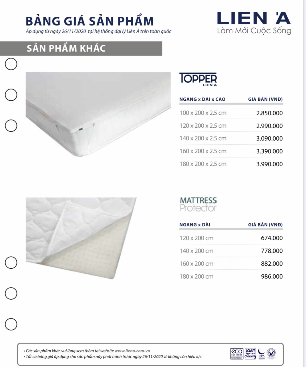 3.Tặng 01 bảo vệ nệm Liên Á trị giá 550.000 đ - 986.000 đ hoặc 01 gối nằm cao su Liên Á oval 45x65cm trị giá 690.000 đ.