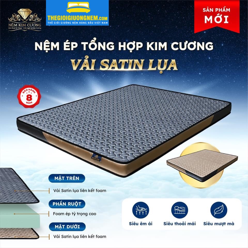 Nệm Cao Su Ép Tổng Hợp Kim Cương Vải Satin Lụa - Mua Online Giảm Giá Khủng