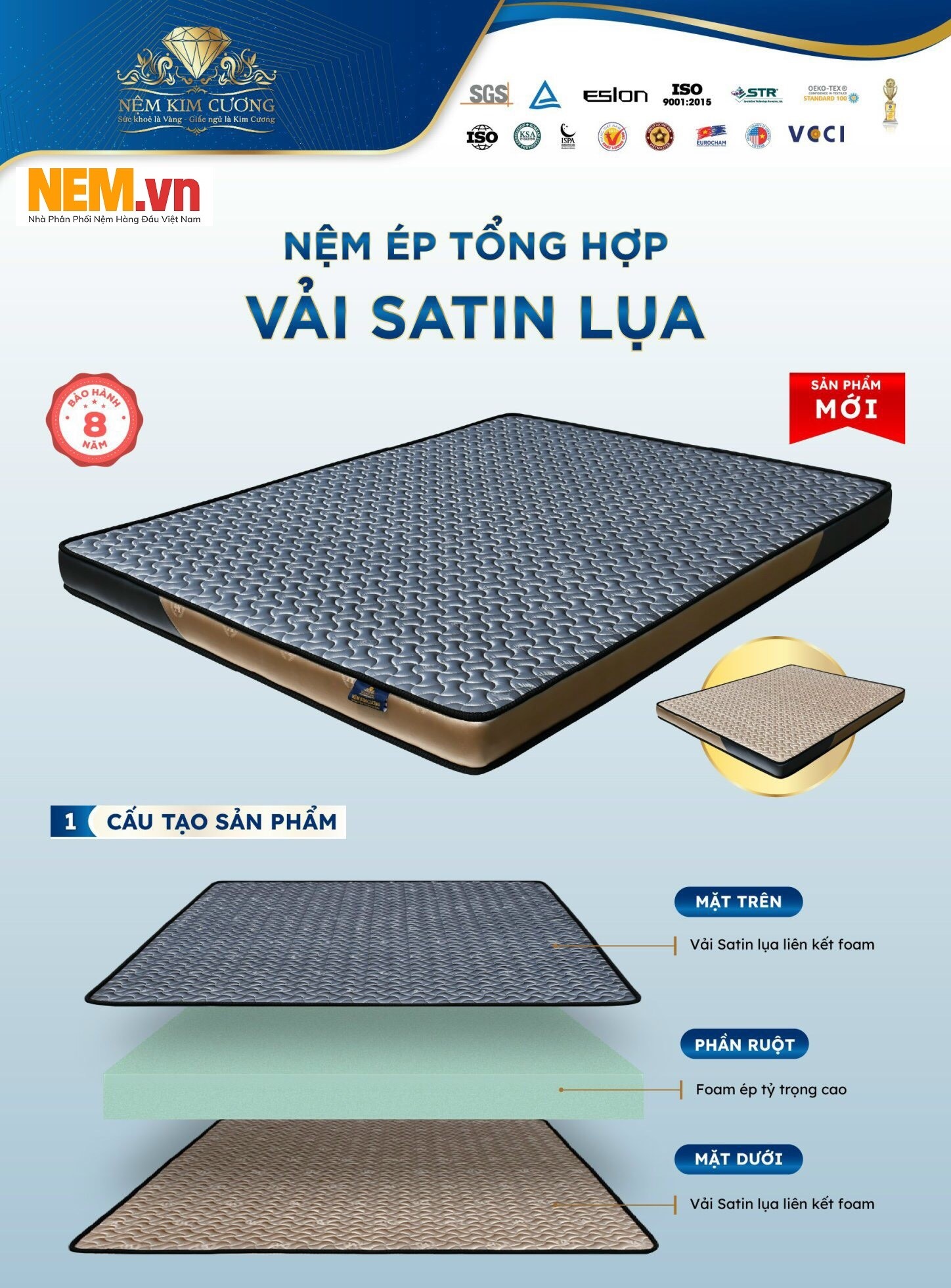 Nệm Cao Su Ép Tổng Hợp Kim Cương Vải Satin Lụa - Mua Online Giảm Giá Lớn Tại www.nem.vn