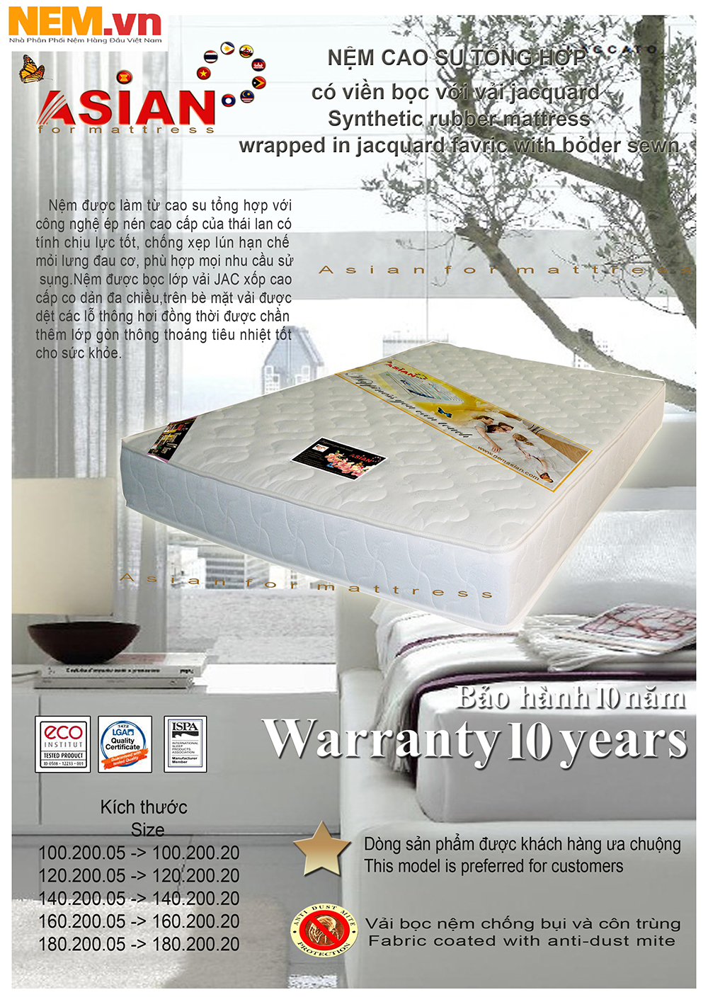 Nệm cao su tổng hợp Thái Lan khuyến mãi giảm giá đặc biệt tại www.nem.vn