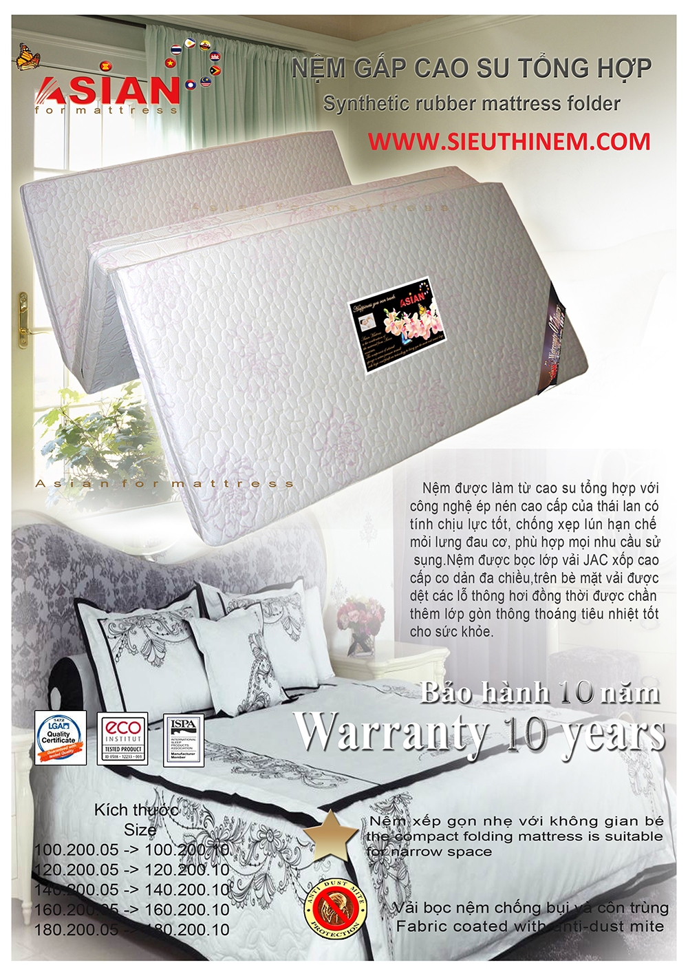 Nệm gấp 3 cao su tổng hợp Thái Lan khuyến mãi giảm giá đặc biệt tại www.nem.vn