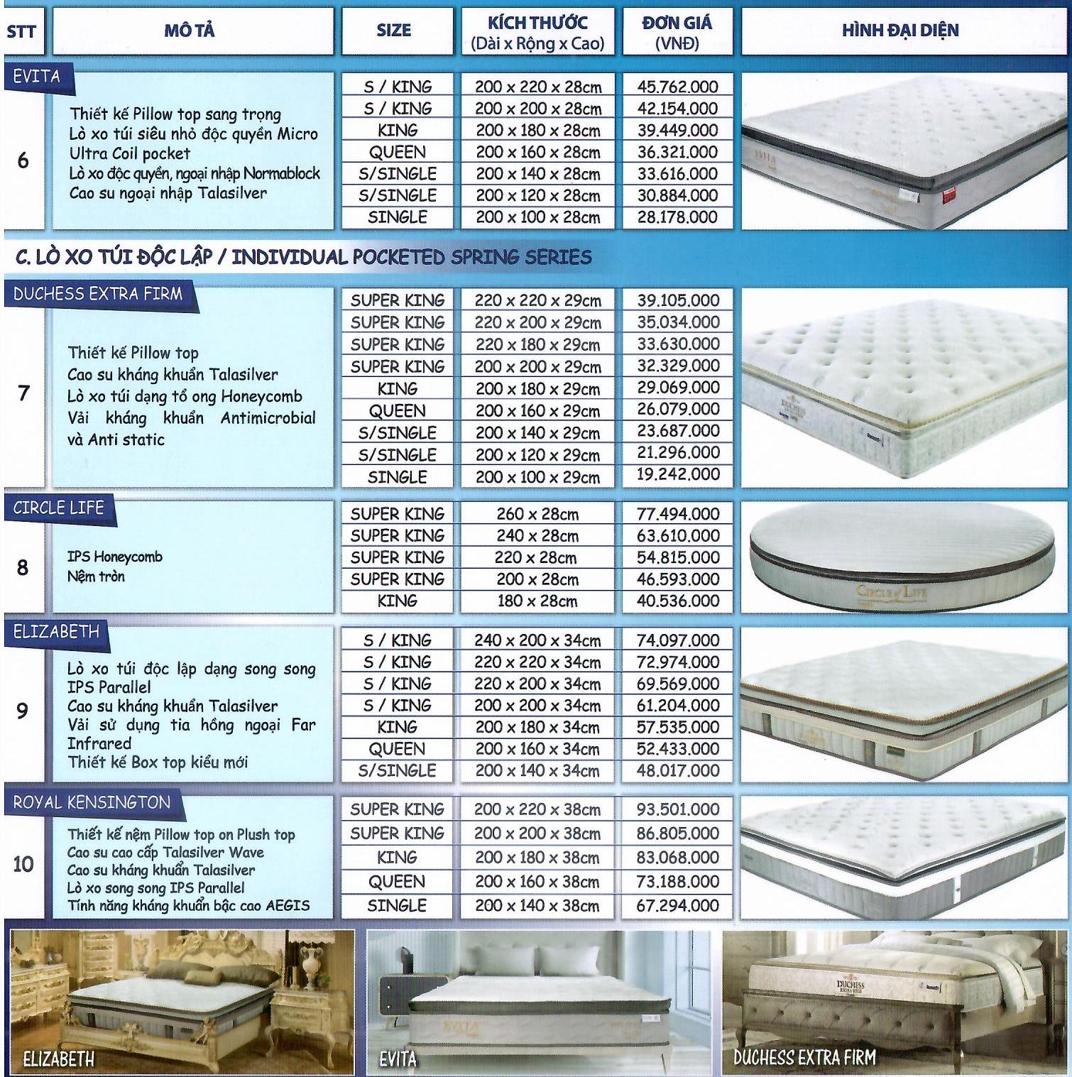 Bảng Giá Nệm Lò Xo Cao Cấp Dunlopillo Evita – New ( 04/05/2024 )