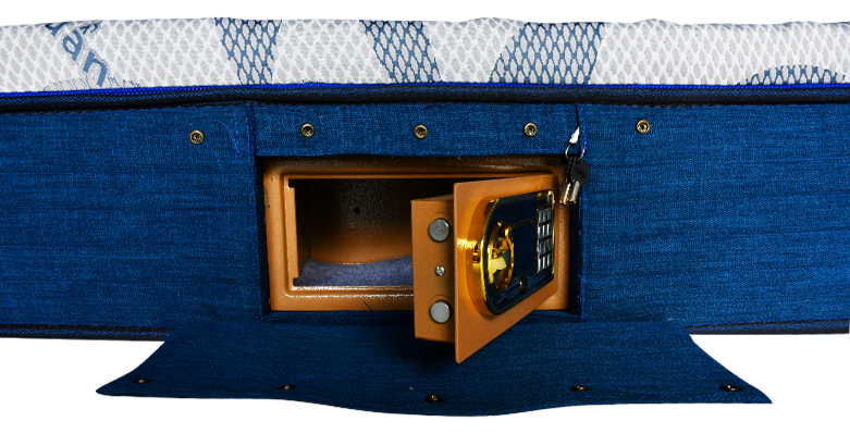 - Đặc biệt nệm còn tích hợp một chiếc két sắt nằm bên trong, giúp người dùng có thể lưu trữ vật dụng quan trọng một cách an toàn.