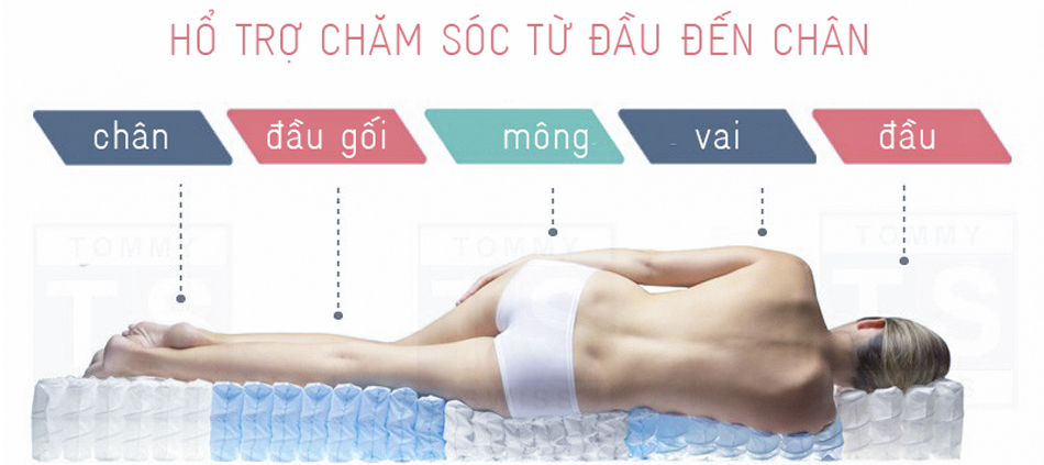 Với thiết kế này, mỗi con lò xo được đặt trong một túi vải, điều này có nghĩa là mỗi con lò xo phản ứng độc lập với chuyển động cơ thể của bạn, tạo ra một hiệu ứng nâng đở tuyệt vời và cân bằng cho từng khu vực riêng biệt trên cơ thể của bạn