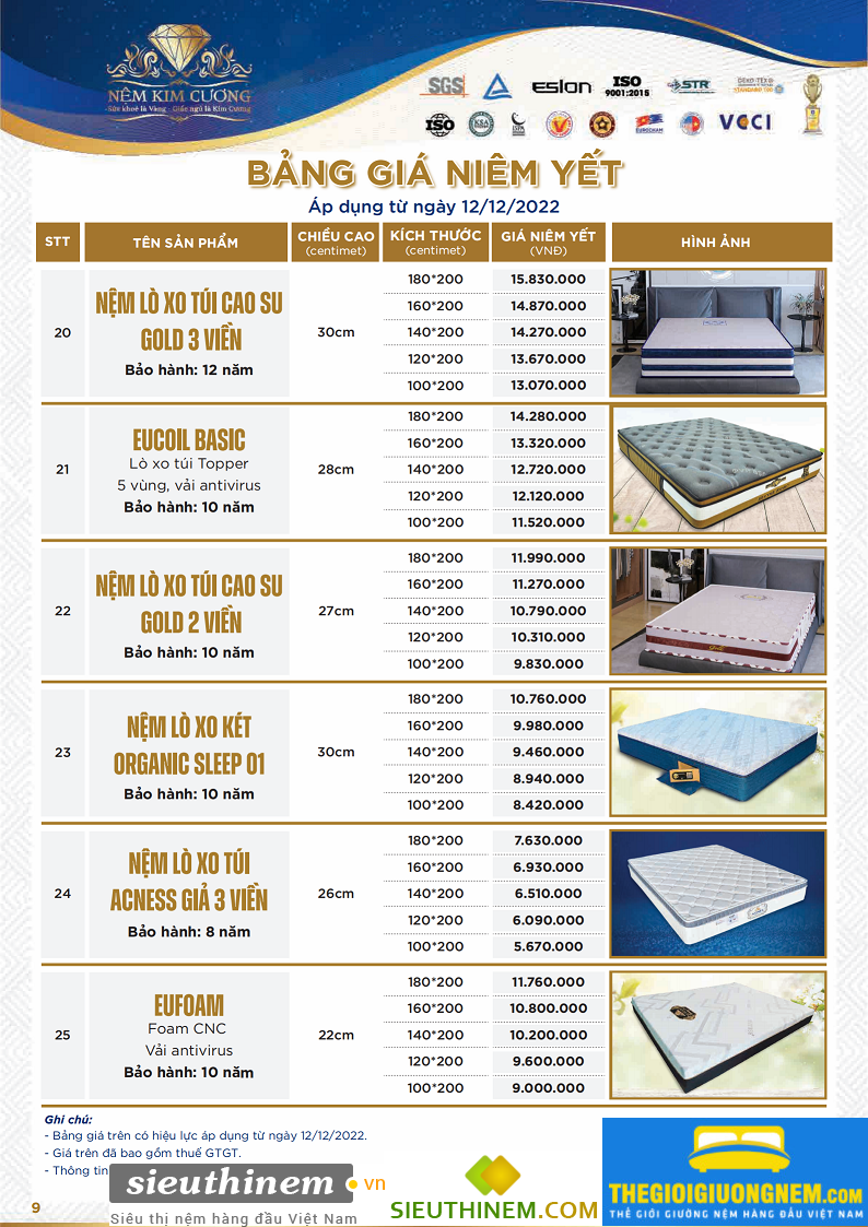 | 200 x 200 x 26cm | 9.163.000 | 6.872.000 | 6.528.000 |