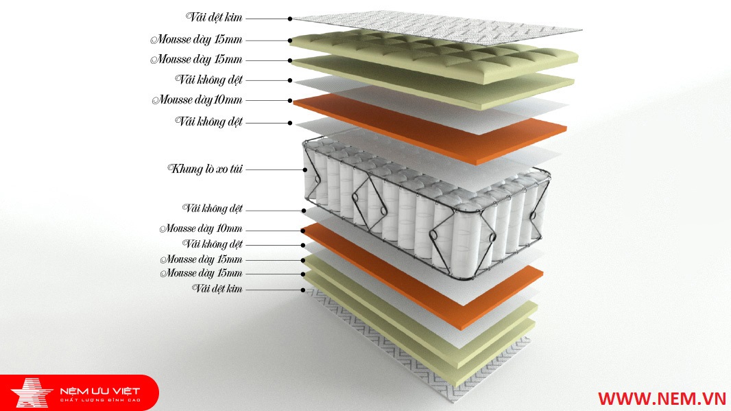 NỆM OK - LÒ XO TÚI 7 VÙNG - NỆM ƯU VIỆT